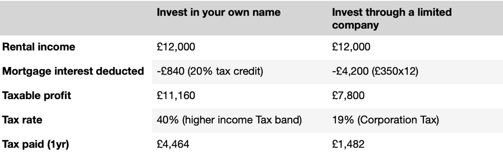 When you invest through a limited company, you can deduct your mortgage interest payments from your rental profits. That means you’ll pay less corporation tax. Here’s a quick example: